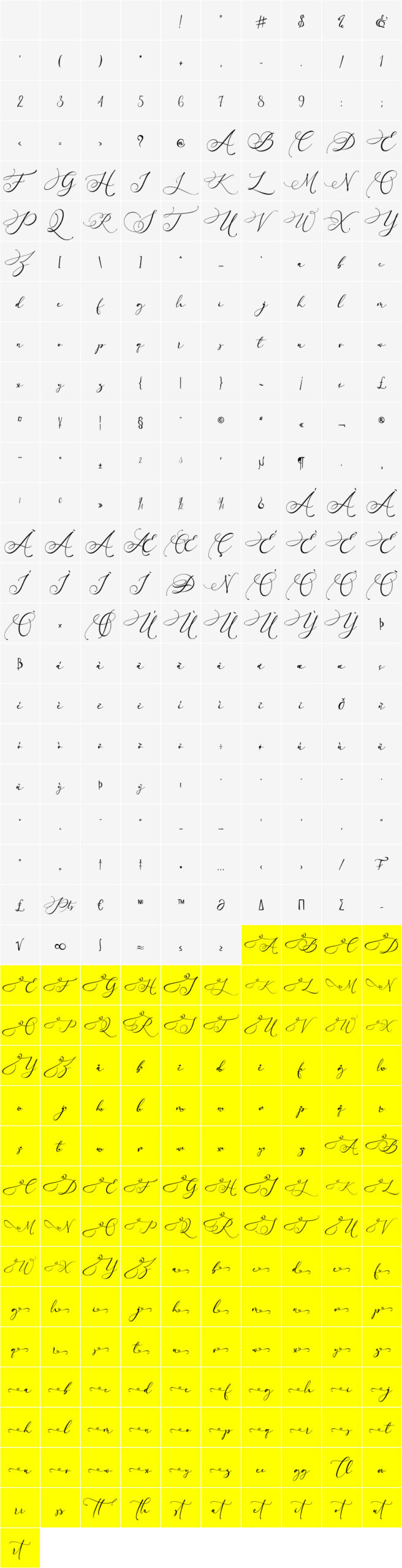 All glyphs (PUA encoded characters are highlighted):