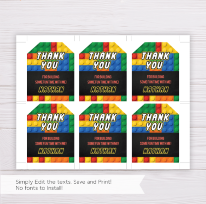 Fun & Colorful Lego Thank You Card Template. Editable in Acrobat Reader, this printable/ready-to-print template comes with blank image that you can use for other purposes!