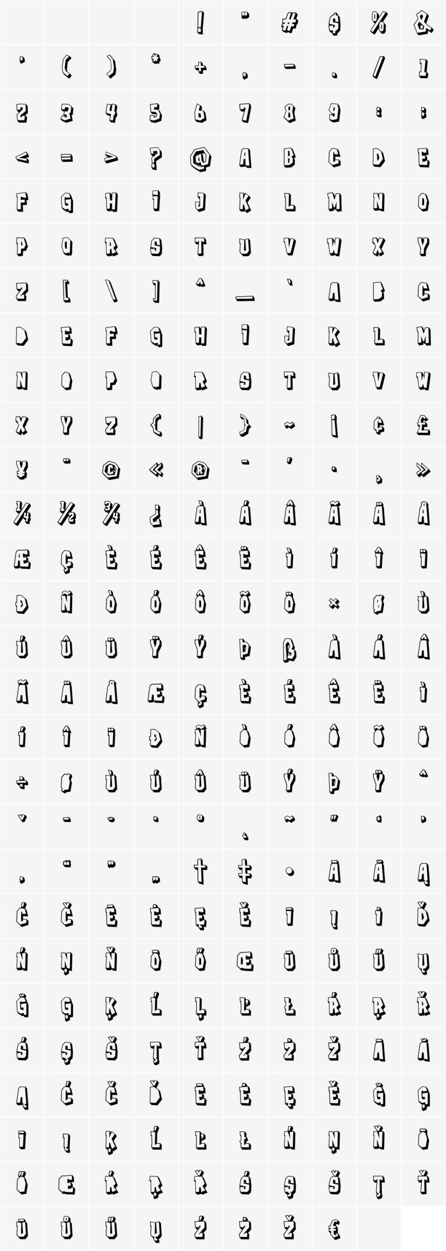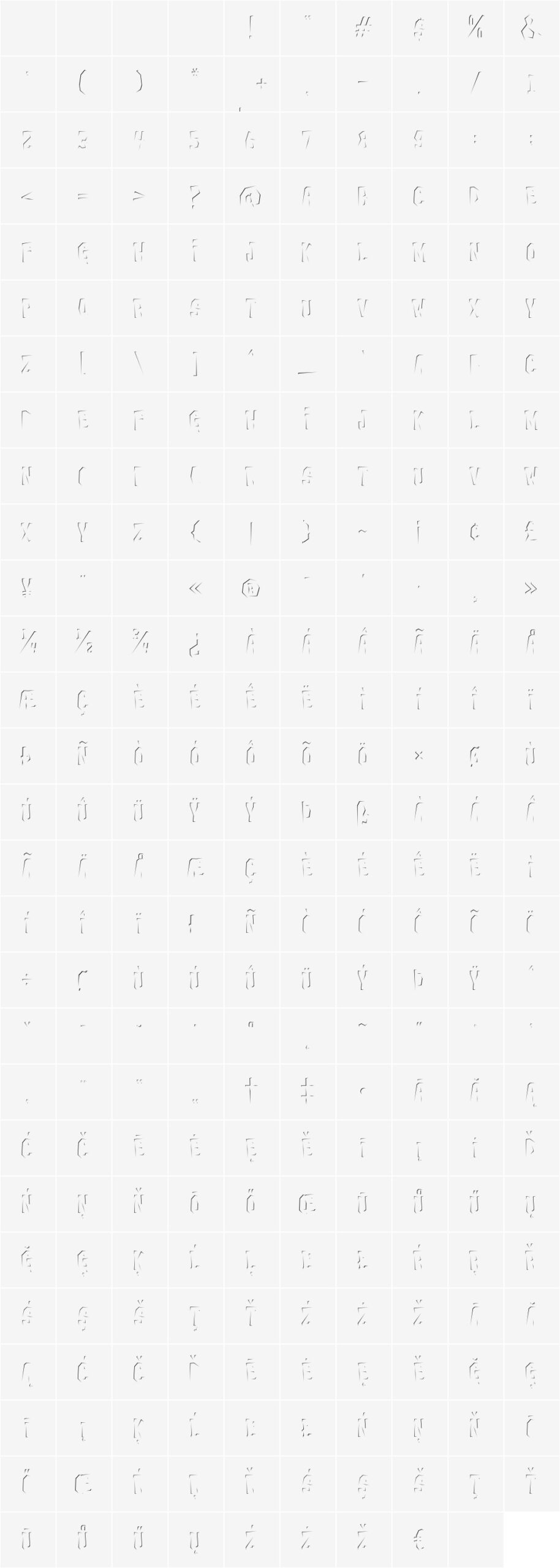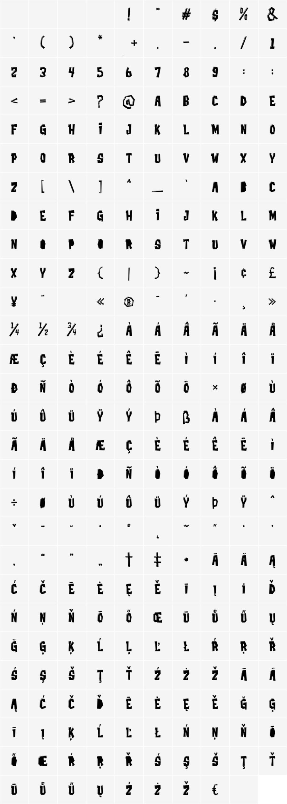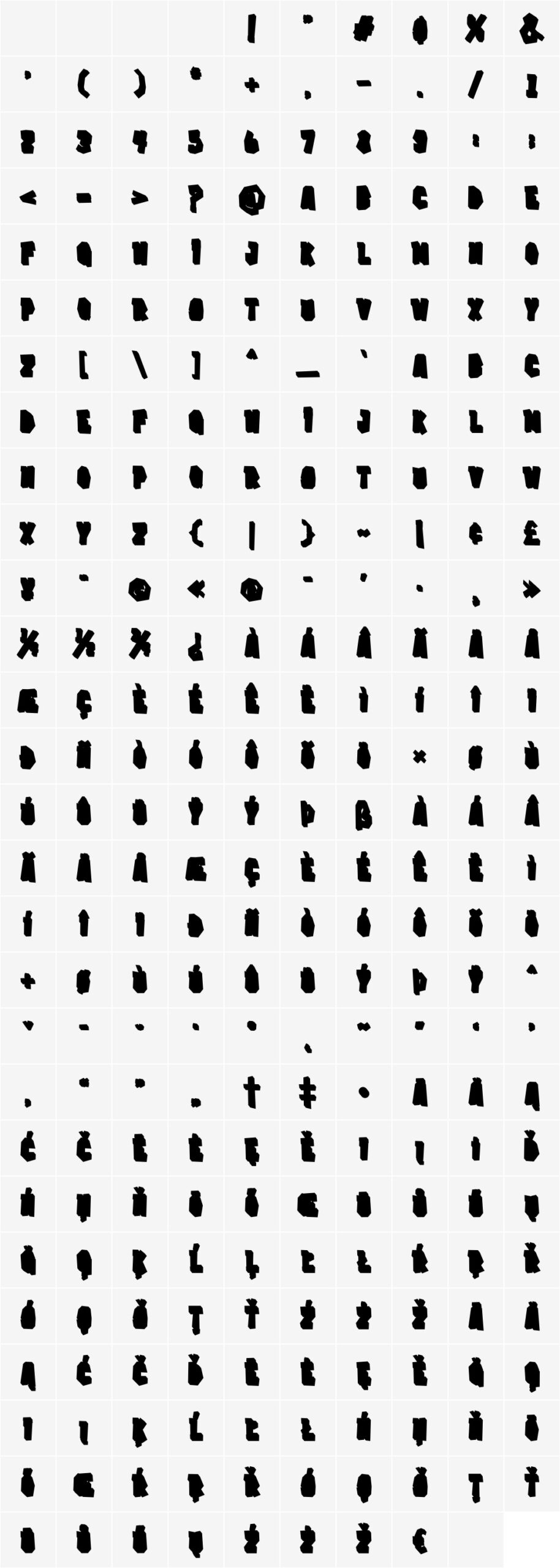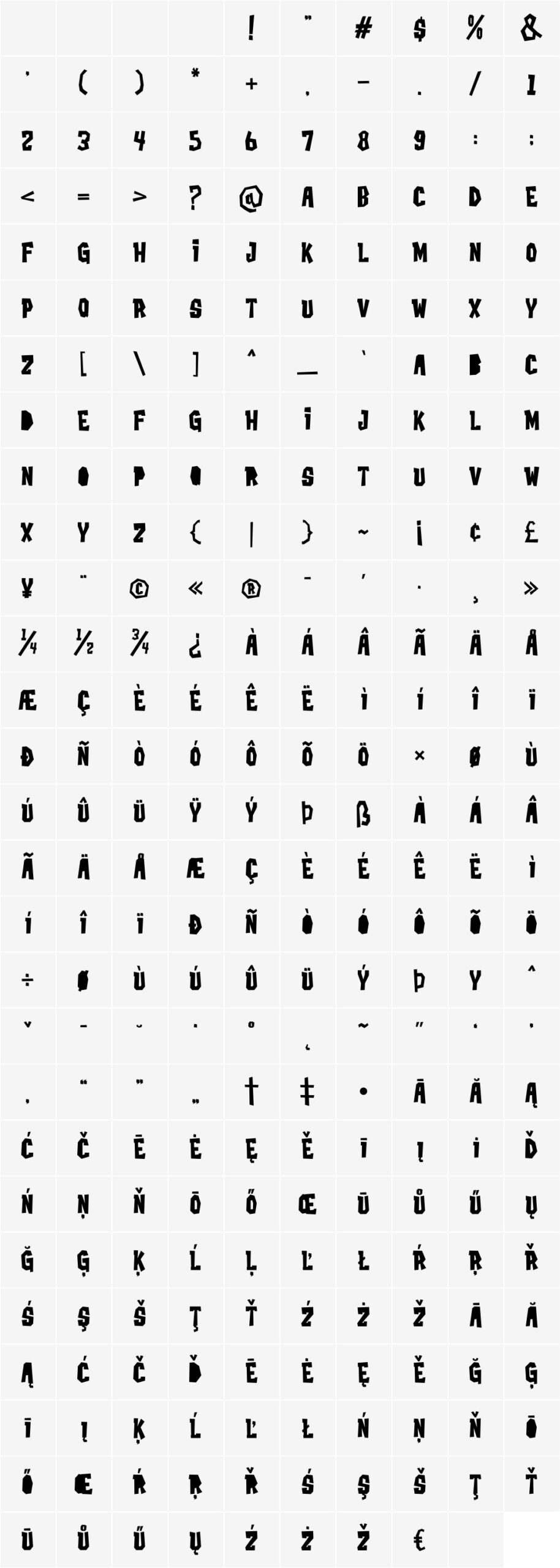All glyphs (PUA encoded characters are highlighted):