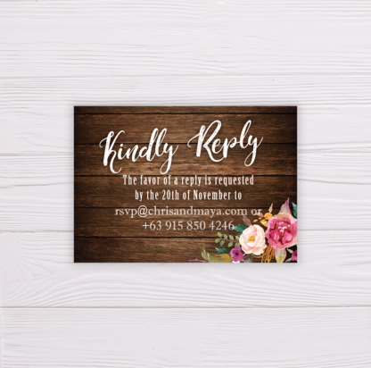 Pretty Rustic Wedding invitation with Wood Background and Blush Flowers Design. Customized for your event, just send us the details and receive your ready-to-print/printable invitation within 24 hours!