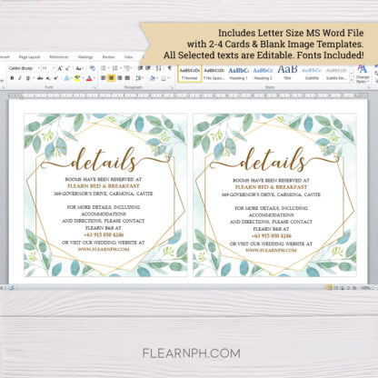 * 1 Printable Letter Size MS Word File with 2 Details Cards & Editable Texts