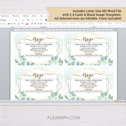 * 1 Printable Letter Size MS Word File with 4 RSVP Cards & Editable Texts