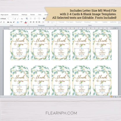 * 1 Printable Letter Size MS Word File with 10 Thank You Tags & Editable Texts
